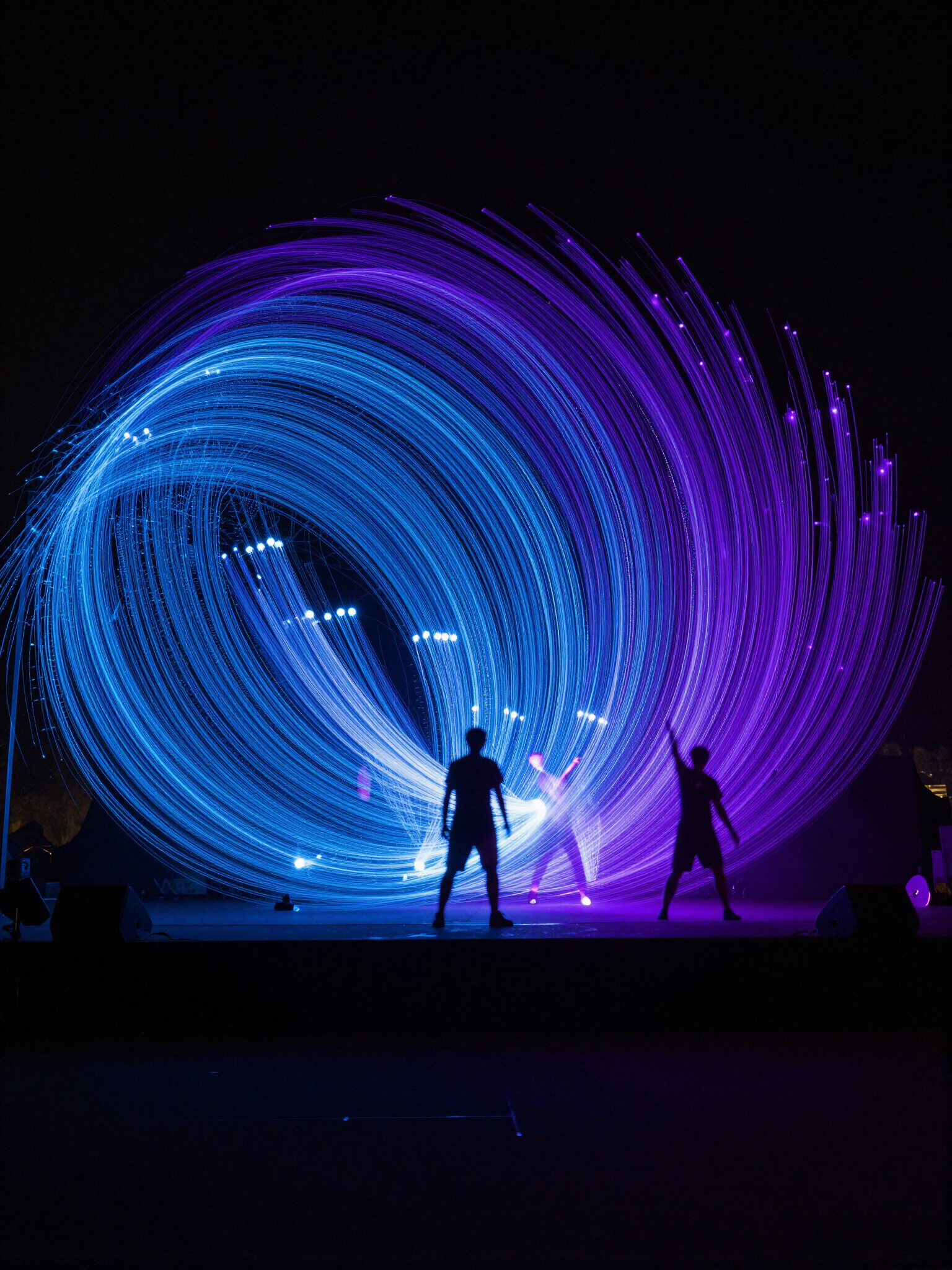 Motorized rigging systems for dynamic three-dimensional light structures and synchronized orbital movement.